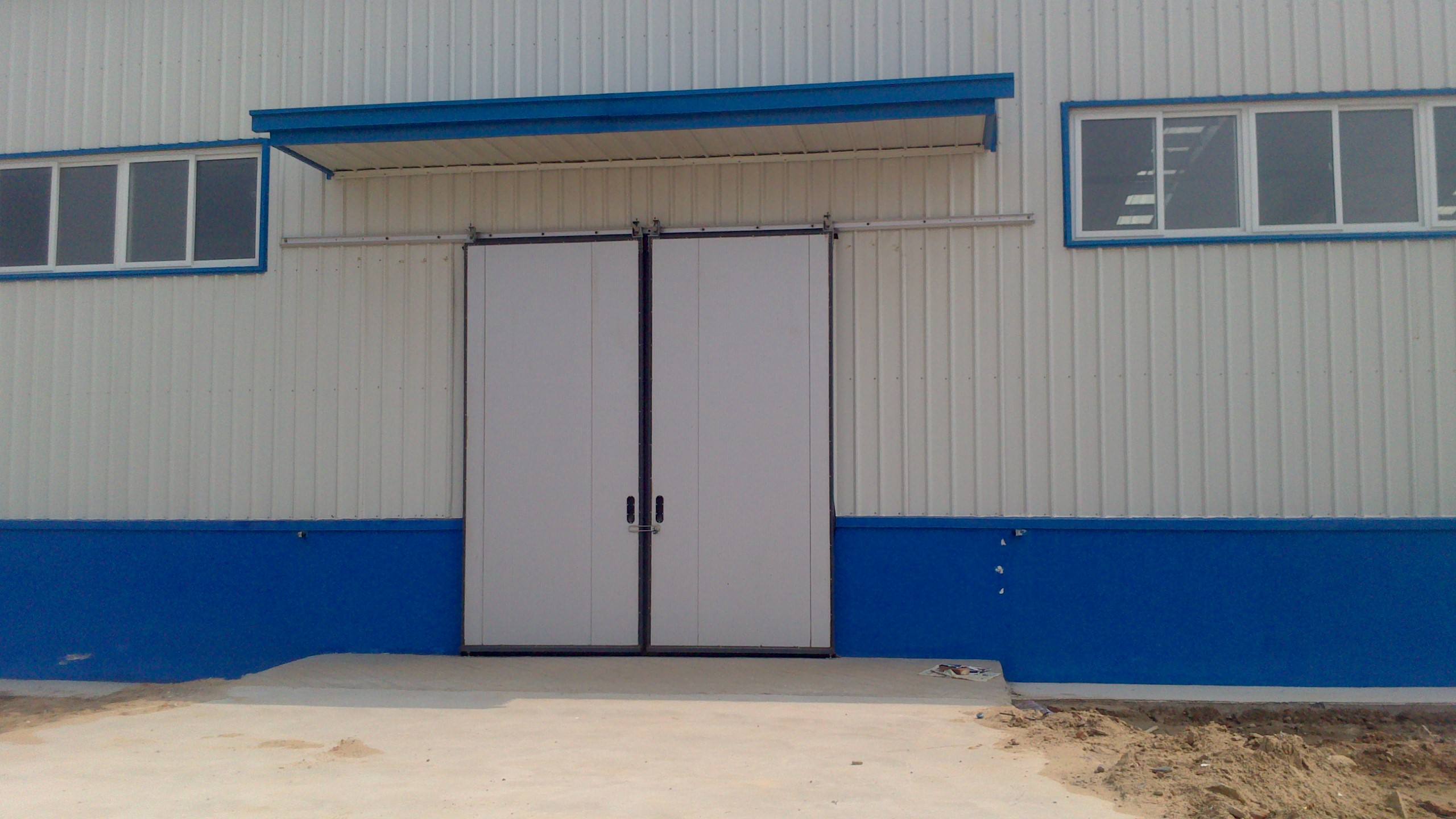 工业推拉门的门板是由两层镀锌钢板组成,表面喷涂聚酯涂层,两钢板之间填充高密度膨胀聚氨酯泡沫。具有操纵轻便、良好的保温与密封性、较强的机械抵挡力等长处。适用于各类型的有较高保温密封与美观要求的厂房、物流仓库或特种车库。